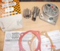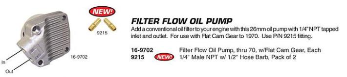 | OIL PUMPS Genuine SCHADEK Oil Pumps. Standard oil pumps for air cooled VW.(non O-Ring) oil pump 21mm $35 (not SCHADEK) oil pump 26mm $38 oil pump 30mm HD $40 Full Flow Oil Pumps We can tap the outlet port and plug it with a removable allen aluminum plug. Oil pump 21mm and pluged for full flow use $45 SCHADEK Oil pump 26mm and pluged for full flow use $48 SCHADEK Oil pump 30mm HD and plugged for full flow use $50 "O-Ring" OIL PUMPS The LowBugget oil pumps have a "O-Ring" seal. This seal is on the back side of the pump to seal up against air leaks. Yes under high RPMs or with a used case and with the new aluminum case it easier for your pump to suck air between the case and the pump than to lift and suck the oil from the pick up tube. This is a big problem with aluminum case's, do to the heat expansion. The "O-Ring" seals up against the case for a snug seal. We take each pump and surfaced the top flat and set at the correct .004" pump to cover clearance. Yes when you order a pump from some other shop they don't even take them out of the box to look at! Each pump comes complete with front and back gaskets. "O-Ring" oil pump 21mm $45 SCHADEK "O-Ring" oil pump 26mm $48 SCHADEK "O-Ring" oil pump 30mm HD $50 "O-Ring" oil pump 21mm and pluged for full flow use $55 SCHADEK "O-Ring" oil pump 26mm and pluged for full flow use $58 SCHADEK "O-Ring" oil pump 30mm HD and plugged for full flow use $60 "Dual-O-Ring" Pro Pump Only at Lowbugget.com! Our "Dual O-Ring" Pro Pump has 30mm gears with top cover set at .004" clearance and two "O-Rings". One seal is on the back for the oil pick-up like normal, and a extra "O-Ring" seal is added to the top to seal up against the pump cover. Yes you will not use the gasket on the cover. So you have a "O-Ring" on the back so the pump can not suck air in and a "O-Ring on the cover so it will not leak out the pump cover! All "Dual-O-Ring" Pro-Pumps come plugged for full flow and include aluminum cover that is dawdled to center the cover and suport the gears. "Dual-O-Ring" LowBugget Pro-Pump 30mm with full flow cover $95 each This is the same oil pump we used on the Overhaulin' engine build for the turbo VW. Info about O-Ring oil pumps. You can not install a "O" Ring pump after the motor is assembled. The two case hafts must be placed around the pumps "O" Ring seal. If you try to install the pump you will damage the "O-Ring". If you have any questions or need help please call or send us an e-mail. Aluminum Oil Pump Cover Our Oil pump Covers are machined flat to seal up agaienst your pump. We also machine the washer surfaces lower to help keep the oil pump cover bolts lower and clear the back side of your pulley. A must on large pumps (26 and 30mm oil pumps) Oil Pump Covers add $25 each Cast Iron cover With washer surface spot faced lower. This will give extra clearance for the back side of your pulley to pump bolts.A must on large pumps (30mm and up) add $28 #16-9702 Filter Flow 26mm oil pump and cover $69.99 #9215 1/4 NPT to 1/2 Barb fittings $6.99 pair |