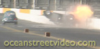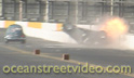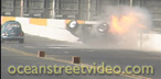 Irwindale for 2002, with more to come. The first event of 2002 was a smashing success. Over 2,500 people packed the stands for a street car slugfest that featured some of the top names in the high-performance VW world. The list of industry heavyweights included some people that hadn't been seen at a VW race in years. In addition, the Der Renn Kafer Cup racers showed up with their outstanding Cal-Look sedans. Ocean Street Video was trackside for all the action, which included some giant wheelstands, and the horrible wreck of the ex-Dean Lowry, now turbocharged, Pro Stock bug. This vehicle is a real junkyard dog, and it got loose going through the lights. It turned hard, rolled over, and shot cross-track at high speed into the wall. The engine broke loose in a ball of fire, and bounced back across the track. The driver was pretty beat up, but he walked away to race another day. The pictures on this page are video freeze-frames of the accident; those of you that have been to the Dairy Queen DKP events will remember seeing the car there last year, as it is street legal, even though it is a full-chassis car. This was also the same vehicle that Don Cossey wrecked at Firebird Raceway, as seen on the PRA '94 videotape. This Drag Day event was the first eighth-mile VW race on the West Coast in many years, as all PRA races are a full quarter-mile in length. It was also an all-bracket event, but there was no shortage of excitement! Some of the boosted vehicles in attendance included Kris Lauffer of VW Paradise in his wicked 10-second nitrous convertible, Robert Hemphill in his 11.03 second blow-thru turbocharged daily driver, and "Muffler" Mike Sheldon, who has been dialing in the turbocharger on his rig this year. This is 80 minutes of non-stop drag racing; it's similar to the Drag Day 3 videotape in that there is no narration, but in this case the only editing is a slow-motion version of the crash. You won't believe how hard that car hit the wall! $15.95 Click here to order |