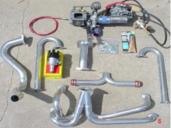 • Each kit is preinstaled on our mock-up motors twice. We perform this task the first time to check that all the flanges lineup and to add any custom changes you may need like crank case E-Vac, O-2 sensor bung or add a muffler. After all parts recive Polished Ceramic Coating, we now mock up the entire kit. This time we hook up all the oil, fuel, boost and drain lines. The whole kit is completely assembled and then shipped this way! YES when you pull your kit out of the box it is assembled. All you will have to do is mount the header, drop in the dizzy, set the turbo on the header and hook up the other ends of the lines, some small things and thats it! 1x True 4 into1 merged collected turbo header, made from 16 gauge steel. ( not 18 or even cheap 20 gauge like others ) •All headers are 100% Polished Chromex Ceramic or Black Velvet Ceramic Coating. •Each header comes with laser cut 3/8" thick flanges at all ends. •All LowBugget turbo headers are made in the USA. • This header will alow you to still remove your fan belt without removing the header unlike others!. •You can still run heater boxes and stock heater duct shrouds. •The 1600T header pipes are 1 3/8", 2000TS is 1 1/2" •Fits under the deck lid!!! • "J" pipes to match the header. Made from 16 gauge steel, Polished Ceramic Coating. 1x Ceramic Coated "Up Pipe" Connects the header -to the turbo exhaust housing. • 3/8" thick flanges. 1x exhaust pipe. The exhaust pipe is different with each kit. Bus, Ghia, and 912 kit have the same style that exits out the right side (1 and 2 side) of your motor. The Bug kits exhaust exits out the left side just under the aprin.. • The size of each exhaust pipe will range from 2 1/2" for most T3 combos to 3" for the large T3/T4 combos. •All exhaust piping is Ceramic Coated. •We can add to your exhaust a O2 sensor bung, •We can add Crank Case E-Vack to vent the case of the extra pressure from the turbo. •1x Ceramic Coated "Y" pipe that conects your stock end castings to the turbo. •If you do not have End Castings we can them to your order. •We can polish the end castings for you. •1x Turbo Prep Carbs. •Did you know that Lowbugget is the only VW turbo shop to set up Holley's for daily drivers that are turbo charged! Yes we use real Holley carbs that are completely gone through and changed so they will drive like a new car but still make big power like all of us want! •WE ARE THE ONLY SHOP TO DO THESE CHANGES!!! •We have over 100,000 miles of testing on and off road! We also use our own turbo kits in our daily drivers and race cars. •over 300hp from our 500cfm turbo prep carb and over 30mpg from our 350cfm turbo prep carb. •New in 2006 we started to use our Turbo Adjust-A-Jets. The use of our Turbo Adjust-A-Jet gives you complete control over the main jetting with out removing the float bowl or any part to make a jet change! • Each main jet adjustment can now be made witha screwdriver from the top of the carb. So if you think its running lean or rich just turn the screw! No more buying all those extra jets.. • All of our Holley carbs have no idle or main jets to remove at all! •The Best part about our carb is its Boost Sensitive Inrinching Power Valve System. The BSIPVS will self-inrichen the main mixture once above 2lbs of boost. Yes this way you will not hurt your motor. We are the only turbo kit manufacturer in the world with this feature. •We can add mechancial choke ( 500cfm carb only) •We can build your carb with a Polished body (500cfm carb only) •You can add Outerwear pre-filter in red, blue, black or yellow for off road use •1x New Turbo. • For the 1600T and 2000TS kits we use a T3 turbo.This turbo is good for over 250hp and has a fast spool up time for street cars. •You can upgrade to our T3/T4 turbos for up to 325hp use or step up to the GT33 for real BIG POWER!! • Turbos can last for 100,000 miles and ours comes with a (1) year warranty against defects and workmanship. •You can add polished compressor housing to your order. • You can have your exhasut housing Ceramic Coated. •You can have the turbo center section Ceramic Coated. The extra parts that our kits come with! • All the hose clamps you need to make this kit complete. For all the boots we use Real USA MADE Turbo "T"-Clamps • For the Oil drain we use a high temp 300psi USA MADE Parker® oil line.This is not your std oil line sold at any auto parts store. We could use some cheap line but i want your kit to last for years not months! • Various size boost lines to conect the wastegate, carb, boost controller, and turbo. • We leave you a boost gauge port "open" for you to run a boost line to your dash for your gauge. • Fuel pump block-off . This is the return oil line or drain from the turbo on most of the kits. •High temp silicone boots to connect the turbo to the intake housing, "Y"-pipe and your end castings. •New locked-out ProBillet distributor for use with turbo combos only. This is a $160 distributor that we include in all 1600T and 2000TS kits for free!!!. • All brass boost and oil fittings to complet this kit( carb boost port fitting, wastegate inlet port fitting, oil drain 1/2" fittings and more) •Billet aluminum oil drain mount. •Stainless Steel Oil feed line with crush fittings and mounts. •AN aluminum Dash 6 fuel inlet fitting at the Holley carb. • Aluminum custom hand made manifold with a CNC Billet carb flange all USA MADE! • Washable and reusable high flow air filter with chrome high polished top. • A tube of High Temp silcone for all exhaust flanges and gaskets. • Throttle cable. Yes we give you a new cable to replace your old one, this is a special cable and must be used on most kits. • All the nuts and bolts to bolt up the complete kit and all of its extras. • Tech suport, yes we want you to call us first! if at any time you have a question or need help please just call!!! • Its Easy, Simple to install! You do have opt