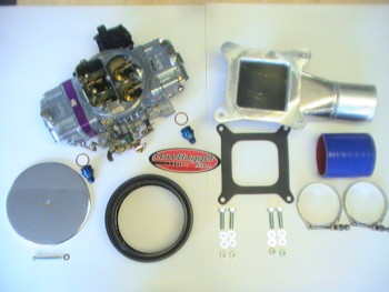 Complete kit: 1x Turbo Carb. Only Lowbugget.com gives you these Features: Holley's Bright shiny carb finish. Quick change adjustable vacuum secondary's (we pre-setup for your combo) 600cfm (good for 350hp), 700cfm (good for up to 450hp use) or 800cfm (good for over 450hp use) No jets, Turbo-Adjust-A-Jet metering, just turn a screw to adjust! (Lowbugget.com Exclusive) (see pick) True boosted power valve that will only add extra fuel when needed!(port on side of carb,see pick) No-jet to change idle/mixture adjustment screws. Clear see-thru sight plugs for easy setting of the float level. Non stick gaskets. AN dash -6 fuel inlets. 6"x3" Washable Gauze air filter for easy cleaning. (we have Outerwear pre-filters also) Chrome aircleaner top. All Turbo-prep carbs are hand built by A.J.Sims. 1x Hand made aluminum manifold with beautiful clean welds. Has support brace welded to under side. Thick 3/8" CNC cut carb flange. Weighs only 1.75lbs 1x Silicone boot any size. Just give us your turbo's inlet size (2", 2 1/2", 3" or 4") 2x USA made "T-Clamps" from Clamp-co. Stainless steel 3/4" wide. 1x Holley 4 barrel carb base gasket 2x ANProfittings.com AN dash -6 aluminum fuel inlet fittings. Complete with hardware. 350hp use 600cfm kit $859.99 with Electric choke add $45 450hp use 700cfm kit $879.99 over 450hp 800cfm kit $899.99 polished manifold add $65 |