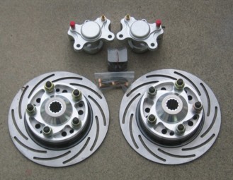 Disc Brakes. Geers Engineering is the leader in disk brake technology! We use a directional steel rotor from Strange Engineering. The one piece design is far superior then others. We also use Strange calipers, which are lightweight aluminum, and come with a stainless steel piston. Geers Engineering provides a billet 7075 directional brake hub that has optional 5/8 threads for the large stud or your standard sway away press in studs. Kit comes complete with rotors, calipers, hubs, studs, lugs, brackets, and hardware. $850.00 5/8 large stud hubs $1050.00 |