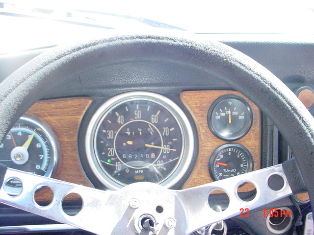 this is in UT, its 101* outside, I'm going about 72mph (i have 145 tires and they will read 10% more on your speed-o) The oil temp is at 220* at the oil inlet at the case. Not bad for 101* out side and at 72mph! On 17" of vac if you look at the boost gauge, Yes with our kits you are on vac most of the time, only when you need it you get up on boost. Thats wy turbo motors run cool! Looks like 3,250rpms and that green light on the speed-o, is my oil cooler fan "ON" light!. |